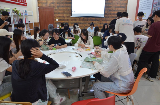 现场布置温馨雅致,同学们围坐一堂,在老师的指导下,互帮互助、欢声笑语不断,亲手制作出了一个个饱含心意的作品。在香包缝制区,同学们挑选心仪布料,穿针引线,将艾草粉装入香囊之中,寄托对健康与平安的美好祝愿;五彩绳编织区则充满创意与协作,一根根红黄蓝绿黑白的丝线交织成吉祥如意的象征;艾草锤制作区更是热闹非凡,大家亲手打造可以拍打经络、舒缓疲劳的养生锤,既实用又有趣;而纸船DIY区域,则让同学们回归童真,用一张张彩纸折叠出承载梦想的小船。