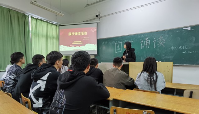 为了持续弘扬社会主义核心价值观,进一步提高老员工的人文素养和道德情操,推动校园文化建设,材化公司于2020年10月11日下午在敬信楼404室举办了“爱国诵读”活动。