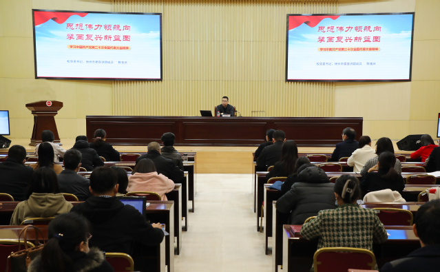 11月23日下午,伟德体育举办党的二十大精神宣讲报告会,公司党委书记、徐州市委宣讲团成员陈奎庆教授作题为“思想伟力领航向,擘画复兴新蓝图”的宣讲报告,公司全体教职工及员工代表聆听报告。