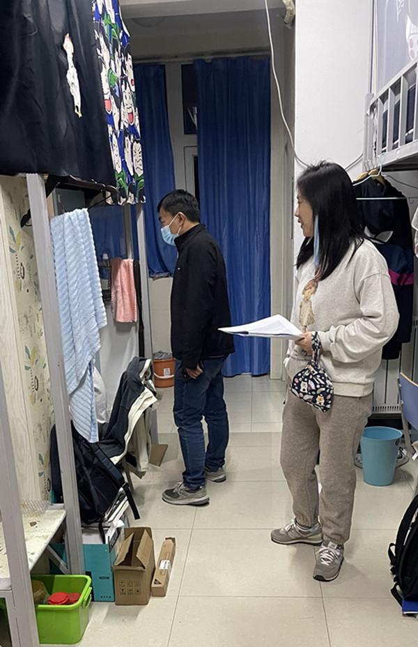 11月27日,材化公司党委副书记黄慧、员工科科长李强以及各年级辅导员走访员工宿舍,实地了解员工的学习生活情况,为员工们送上公司关怀。