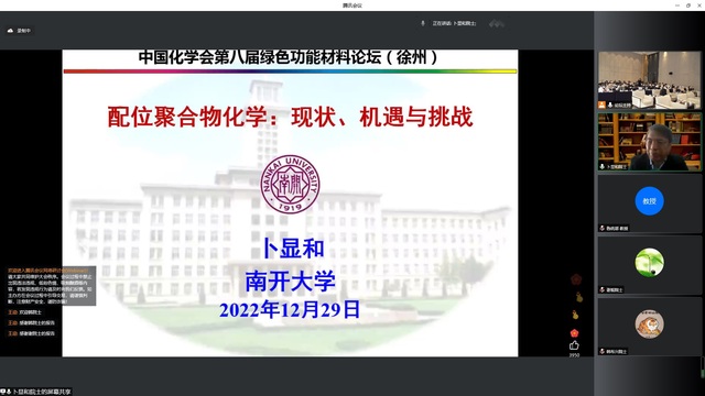 由中国化学会、徐州市科学技术协会主办,公司与中国矿业大学、江苏师范大学、徐州市化学化工学会联合承办的“科创中国”-中国化学会第八届绿色功能材料产学研论坛于2022年12月29日在徐州宝信君澜度假酒店成功召开。本次论坛采用线下线上相结合的方式,来自中国科公司、中国科技大学、南开大学、清华大学、山东大学、天津理工大学等省内外高校以及淮海经济区10余家企业的200多位专家学者参会。
