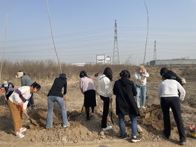 全体女教师来到潘塘农业园东区,按照三人一组自由搭配,做到分工明确,责任到人,相互协调。一个小时,20多棵树苗,大家挖坑、扶苗、培土、浇水一气呵成。平日爱美的女老师们此时不怕脏不怕累,干劲十足,放眼望去一片热火朝天,确保种活每一株、种绿一片林。植树活动不仅增强了女老师们的团结意识,也厚植了大家生态环境保护和建设美好家园的环保意识,以实际行动践行“绿水青山就是金山银山”的绿色发展理念。