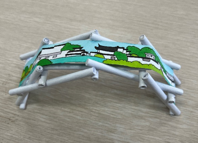 活动倡议使用废纸、胶水为原料,由各团队设计并制作出“纸桥”,在考较各组作品承重能力的同时,也兼顾美观。同学们通过运用力学知识,通过精巧的手工,制作完成了一架架精美的纸桥。经过裁判团的判定,来自材化公司21级的杨锦岳团队设计的作品以2.3公斤的承重能力获得了大赛第一名。