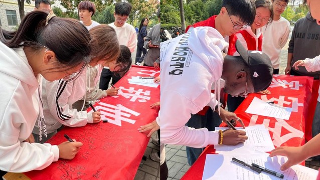 活动中,志愿者引导同学们仔细阅读《安全骑行倡议书》,向大家宣讲交通相关的交通规则和规定,倡议同学们遵守规章制度,文明骑行,安全用车,保障人身安全、校园安全。现场同学们纷纷在横幅与倡议书上签名,承诺从我做起,维护良好安全秩序。