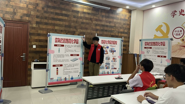 活动中,协会成员通过知识宣讲和案例分析,详细解释了化学危险品的分类、特性,以及在实验室和日常生活中如何正确使用和储存这些物品,也特别强调了在紧急情况下处于宿舍生活中正确的应对措施。其后的互动环节中,同学们提出了一些关于化学危险品的问题,志愿讲解员们都耐心解答。