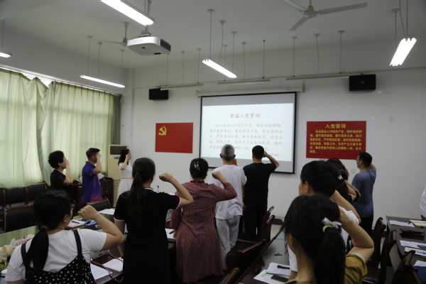 最后,在这激动人心的时刻,支部书记李靖带领全体党员,高举右手,面对鲜红的党旗,再次庄严宣誓:“我志愿加入中国共产党……随时准备为党和人民牺牲一切,永不叛党。”铿锵有力的誓词,强烈震撼着在场的每一位党员,一字一句,神圣豪迈,铮铮誓言,体现了党员同志们对中国共产党的无限忠诚,坚定了入党使命,奋斗初心。