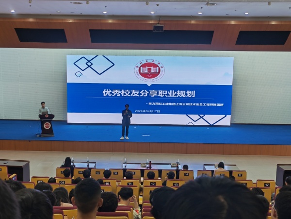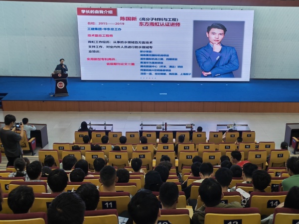 4月17日,公司邀请东方雨虹工建集团上海公司技术副总工程师陈国新来公司做职业规划分享。陈国新先生是公司2019届高分子材料与工程专业优秀毕业生,东方雨虹任职期间,以第一作者身份获得2项实用新型专利,被东方雨虹集团内聘为讲师,开发《高密度聚乙烯(HDPE)高分子自粘胶膜防水卷材材料及施工》《建筑渗漏维修及前置措施》《建筑防水安全体系》等课题课程;参建湖南黄花国际机场、浦东国际机场、青浦华为基地等大型项目。