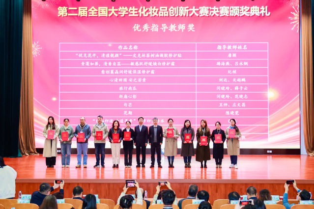 伟德体育的纪方杰、沈馨怡、朱慧慧、王玺润、陈帅全等同学,在庄文昌、吴琼、那伟丹、卫帅等老师的悉心指导下,提交的12件作品表现出色,分别荣获全国一等奖1项、二等奖3项、三等奖3项、优秀奖5项。同时,团队还斩获优秀组织奖1项,庄文昌、卫帅老师被评为优秀指导教师,覆盖了大赛的全部奖项类别,实现了公司化妆品学科竞赛全国一等奖、优秀组织奖以及优秀指导教师奖三大突破。