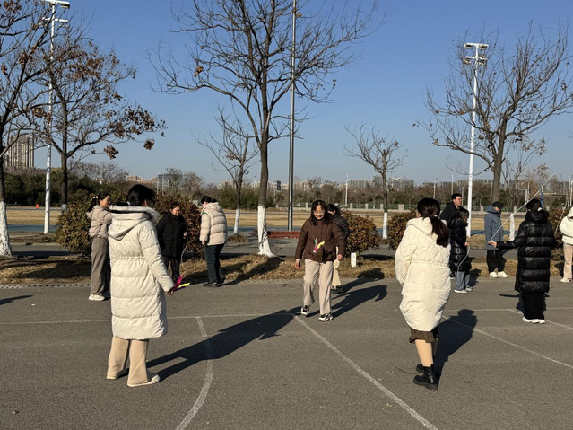 与此同时,在操场的另一侧,女教职工的踢毽子比赛也在如火如荼地进行中。这项传统而有趣的运动吸引了众多女教职工的参与,无论是年轻教师还是资深教授,都纷纷加入其中,享受着踢毽子带来的乐趣。五彩斑斓的毽子在空中划出一道道优美的弧线,伴随着欢声笑语,整个操场洋溢着轻松愉悦的氛围。